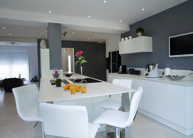 Tout est dans les détails pour cette cuisine blanche en laque brillante sans poignée.