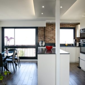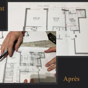 Envie de complète rénovation pour cet appartement de Boulogne Billancourt avec des contraintes d’angles et de tuyaux au milieu de la pièce après ouverture.
