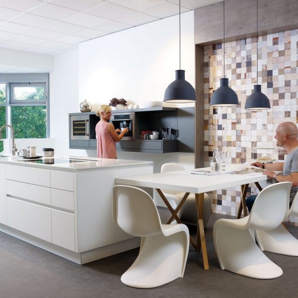 Grand choix de coloris dans les façades revêtues de laque poudre de haute qualité. La laque poudre a des avantages élémentaires par rapport aux laques traditionnelles : elle est robuste, résiste aux éraflures et aux chocs. Particulièrement insensible aux salissures, elle est de surcroît extrêmement facile d’entretien et séduit par un toucher agréable et un aspect haut de gamme.